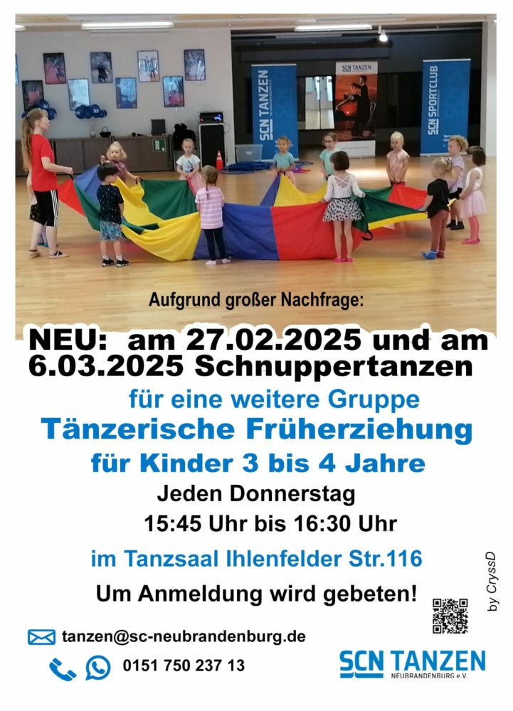 Bei Interesse und/ oder Fragen melden Sie sich gerne per Email unter: tanzen@sc-neubrandenburg.de oder per Telefon/ Whats app unter: 0151 750 237 13