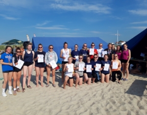 Am Wochenende nahmen unsere Mädels vom SCN in drei Altersklassen bei den Landesmeisterschaften im Beachvolleyball in Warnemünde teil. Für die meisten war es das erste große Turnier im Sand. Aber alle unsere Mädels haben sich hervorragend geschlagen und sehr viel Spaß gehabt. Auch die Sonne meinte es sehr gut mit uns, sodass sich der ein oder andere einen kleinen Sonnenbrand holte. Aber nun ein paar Worte zum Turnier. Am Samstag, den 01.06.2019, traten wir mit einem Team bei der Landesmeisterschaft U19 und vier Teams bei der Landesmeisterschaft U17 an. In der U19 belegten Shelly und Tabea den 10. Platz. In der U17 Jenny und Marie den 10.Platz, Jette und Sarah den 6. Platz, Pia und Tara belegten den 3. Platz. Unser viertes Team Rosalie und Lea mussten leider verletzungsbedingt aufhören. Lea, gute Besserung für dich. Trotzdem war dies schon mal ein gelungener erster Tag. Am Sonntag, den 02.06.2019, starteten wir wieder mit vier Teams bei der Landesmeisterschaft U18. Hier sicherten Lakisha und Leonie den 10. Platz, Kira und Anna den 7. Platz, Emmi und Josi den 6. Platz und Pia und Tara den 1. Platz. Somit ist der SCN nicht nur in der Halle Landesmeister in der U18, sondern auch im Beach. Nicht schlecht, das muss erst mal einer nach machen. Mit diesem Titel haben sich unsere beiden Mädels für die Deutsche Meisterschaft im Beach qualifiziert, Herzlichen Glückwunsch.