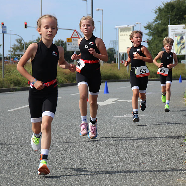Das größte Starterfeld gab es bei den Schülerinnen C (400 m Lauf – 2,5 km Rad – 400 m Lauf). Hier erreichten unsere Athletinnen folgende Platzierungen: Elsa Baugarten Platz 2, Nila Luise Meyer Platz 3, die jüngeren Jahrgänge Käthe Lewerenz gute 5., Tamina Fuhrmann 6. Frieda Witt 7. und schließlich Ruby Vierhufe mit Platz 9 auch noch in den Top 10.
