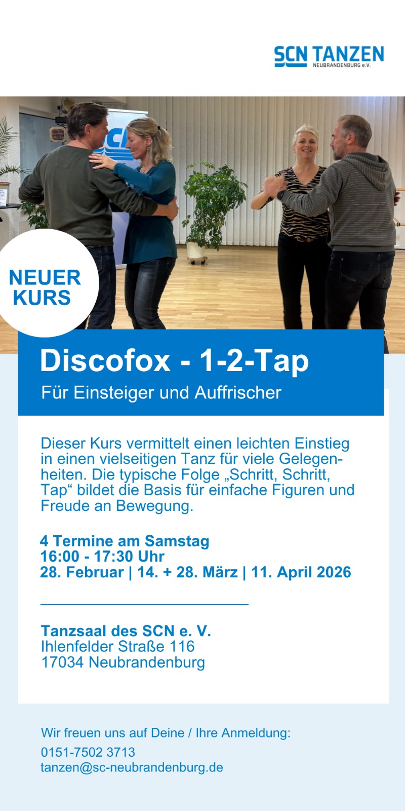 Weitere Informationen und Anmeldung telefonisch oder per E-Mail an tanzen@sc-neubrandenburg.de