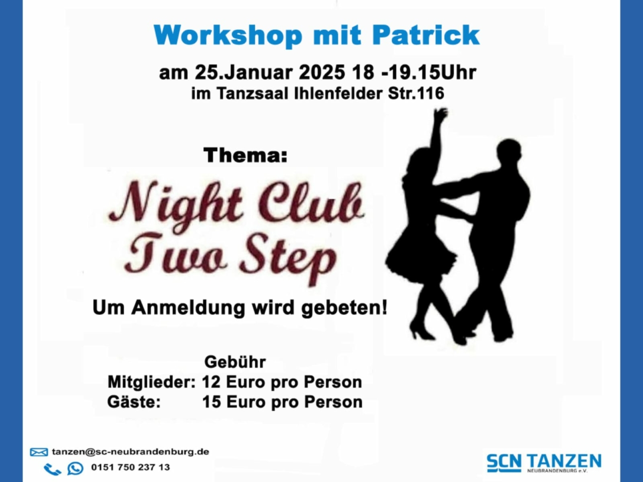Am 25.Januar 2025 läd die Abteilung Tanzen wieder zum Workshop. Night Club Two Step- ein Tanz den man auch zu moderner langsamer Musik tanzen kann. Bei Interesse gerne per E-Mail: tanzen @sc-neubrandenburg.de oder per Whatsapp/ Telefon : 0151 750 237 13 anmelden.